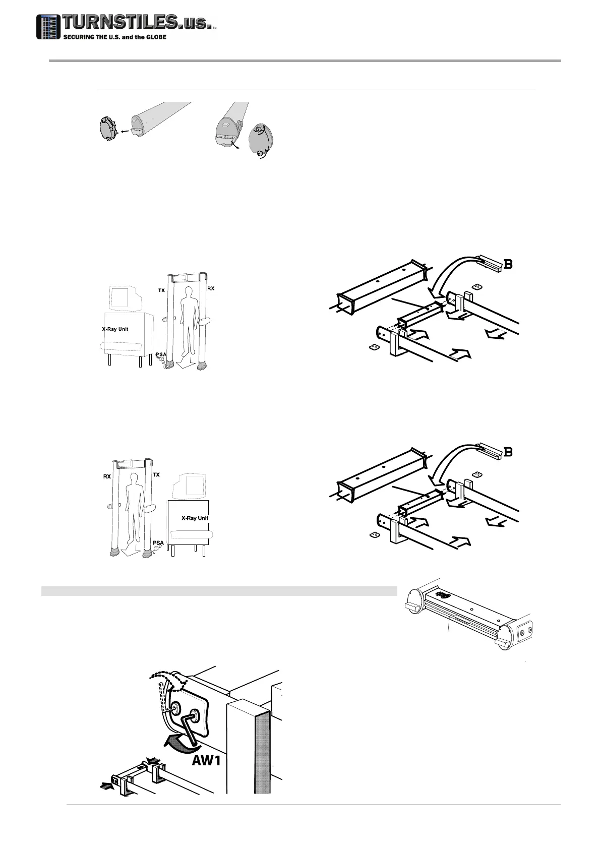 Place the crossbar as illustrated in the figure below (holes for the control unit close to the TX