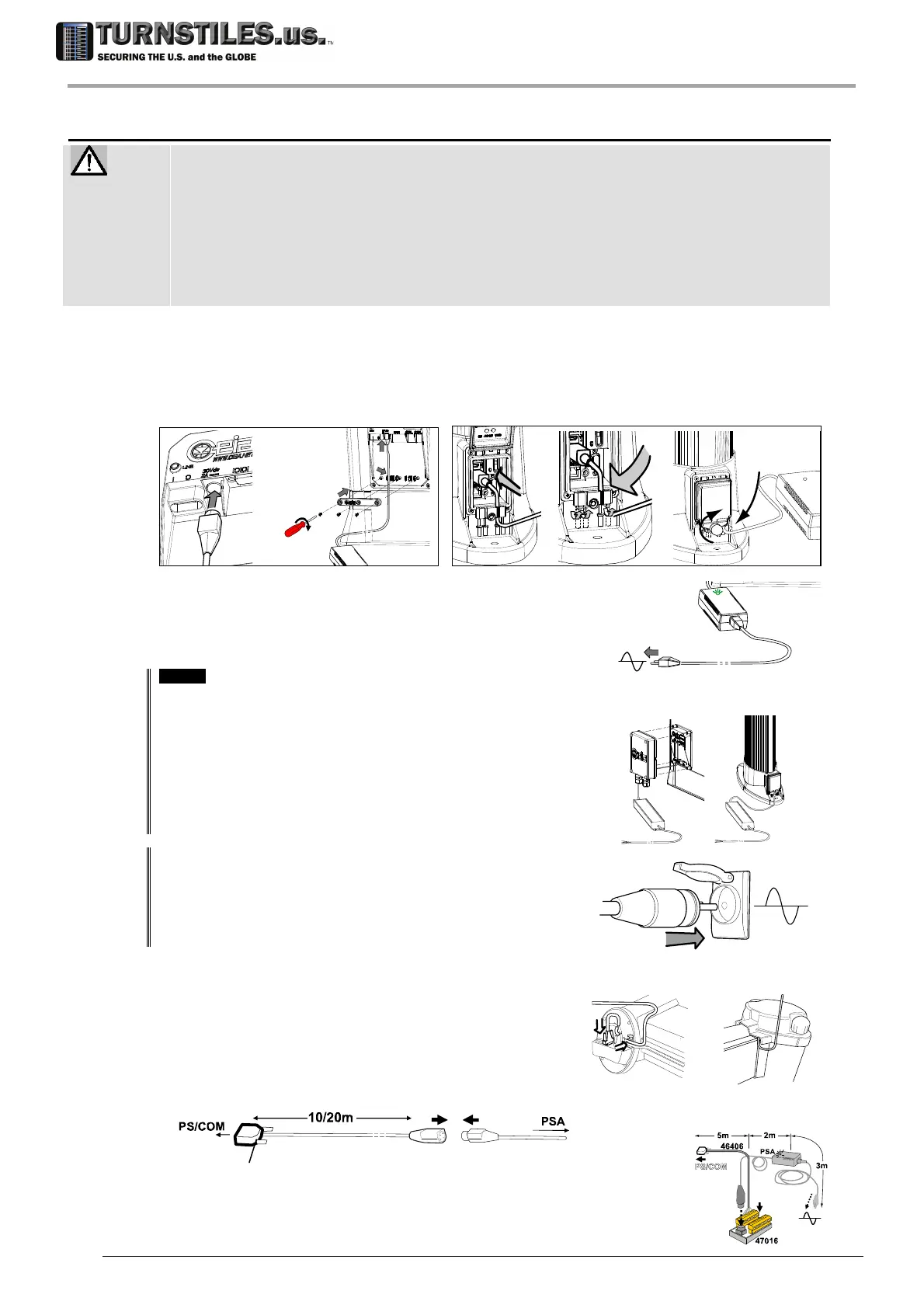 All connecting cables between the gate and the power supply or other external devices must be properly