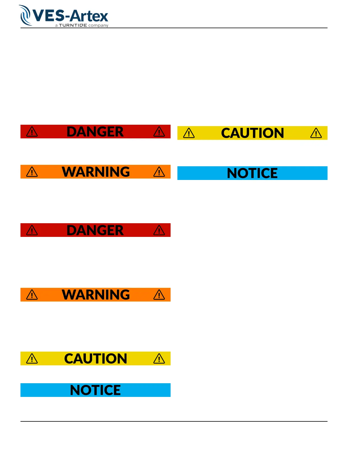 For the safe handling of VES-Artex products, you will nd the following safety words DANGER, WARNING, CAU-