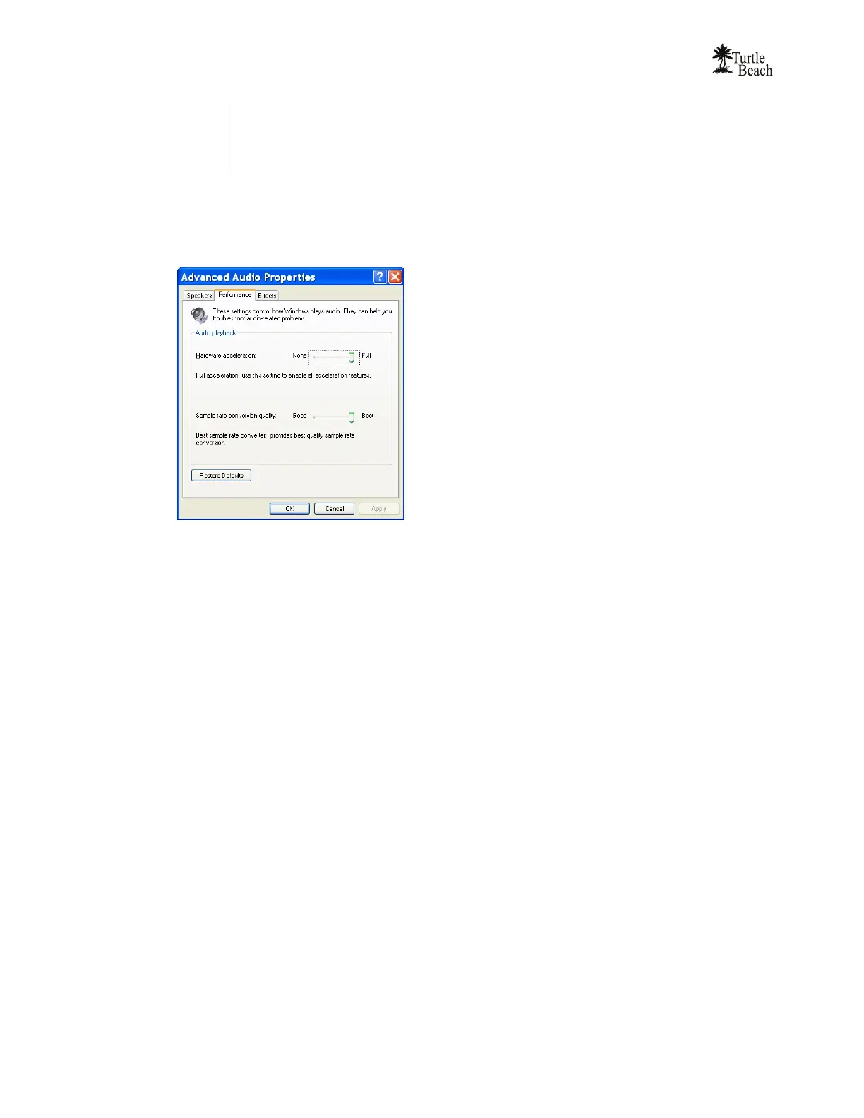 Playback Advanced Button Æ Performance Tab Æ Advanced Audio Properties Dialog.
