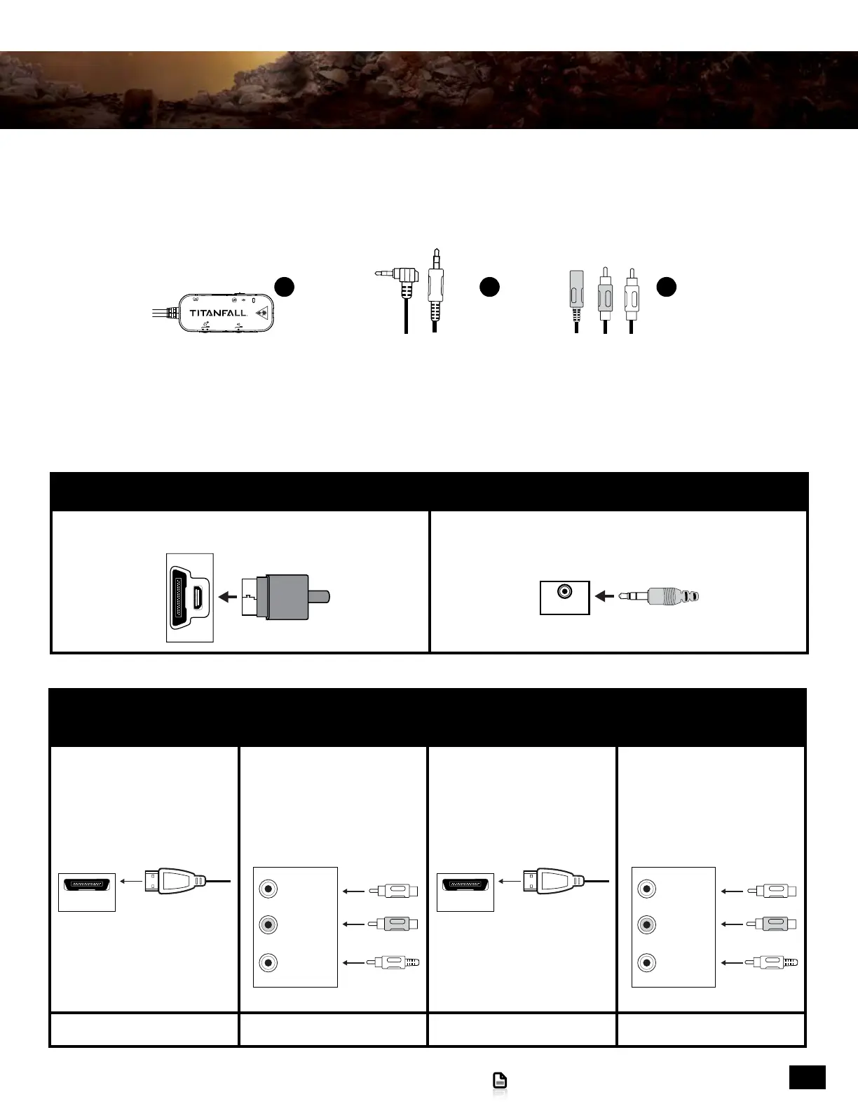 The Titanfall Ear Force Atlas headset is packaged with an In-Line Amplifier, an Xbox 360 Chat Cable and an RCA Splitter