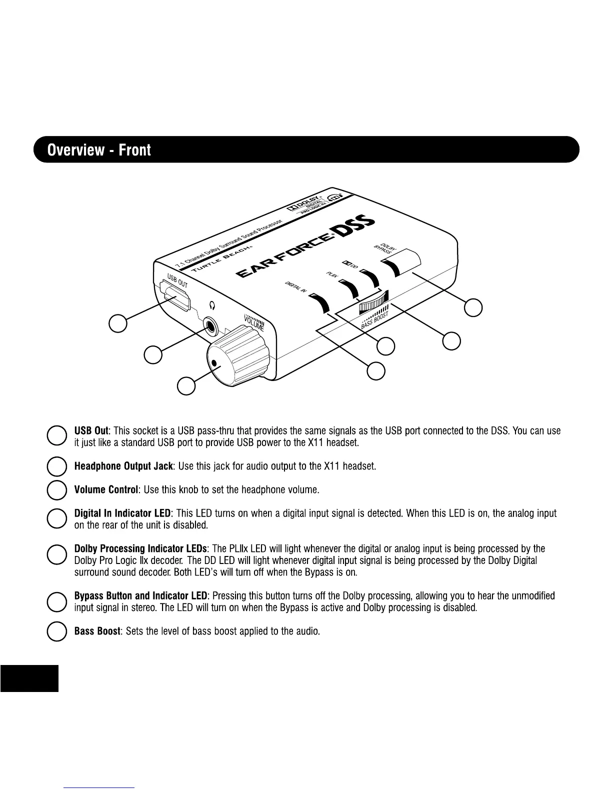 Turtle Beach Ear Force DX11 - Front Panel Overview; Front Panel Controls and Indicators