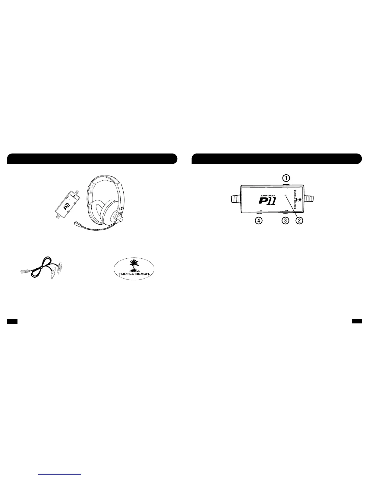 Turtle Beach Ear Force P11 - Package Contents; Ear Force P11 Headset; P11 Audio Splitter Cable; Turtle Beach Sticker