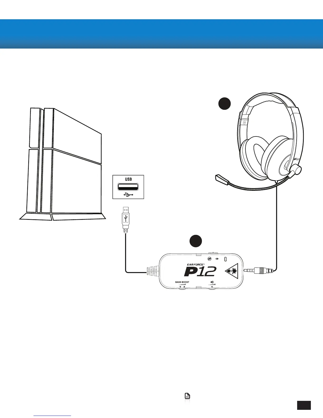 2. Connect the USB Plug on the P12 In-Line Amplier to a USB Port on the front of the PS4