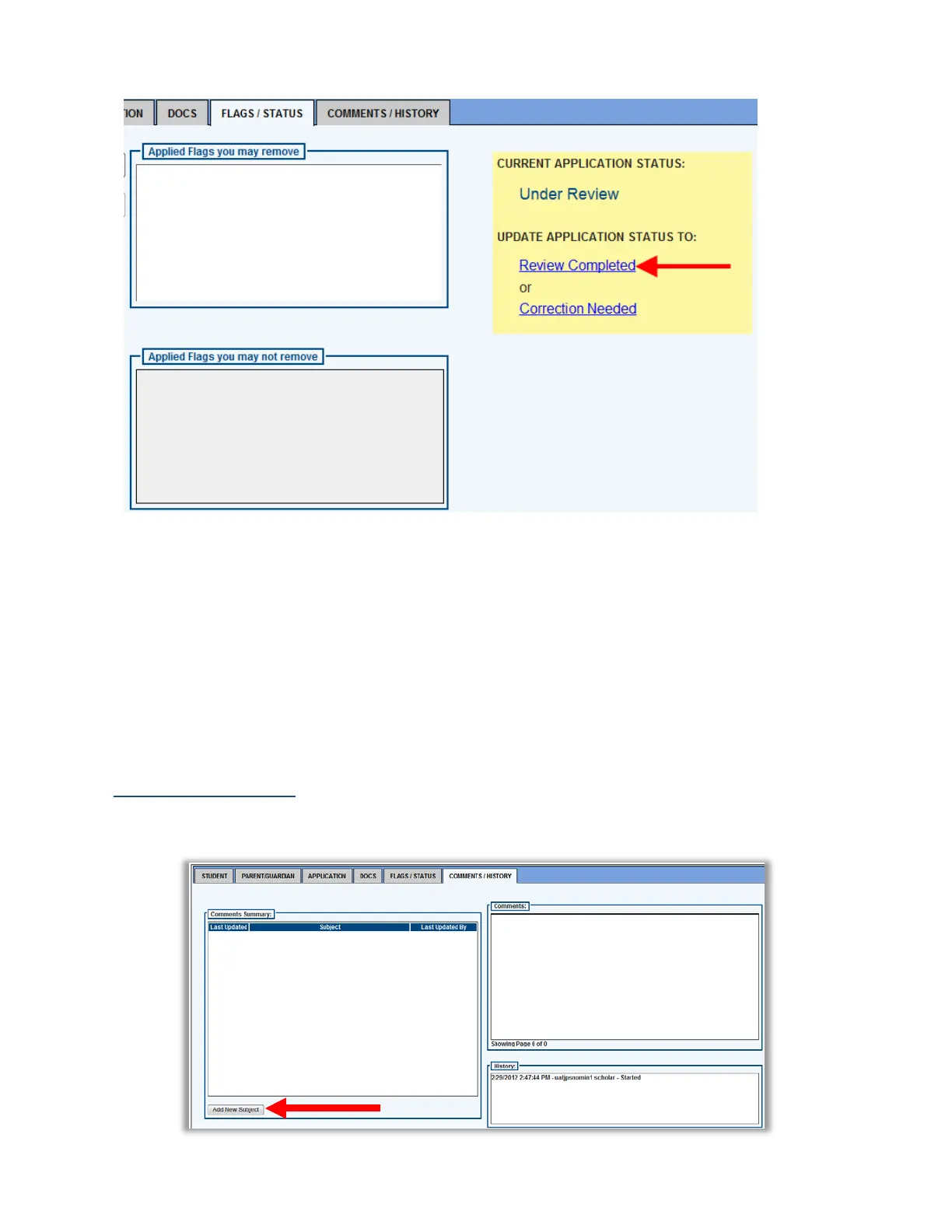 The Comments/History section allows the user to include any information regarding the application that ODE,