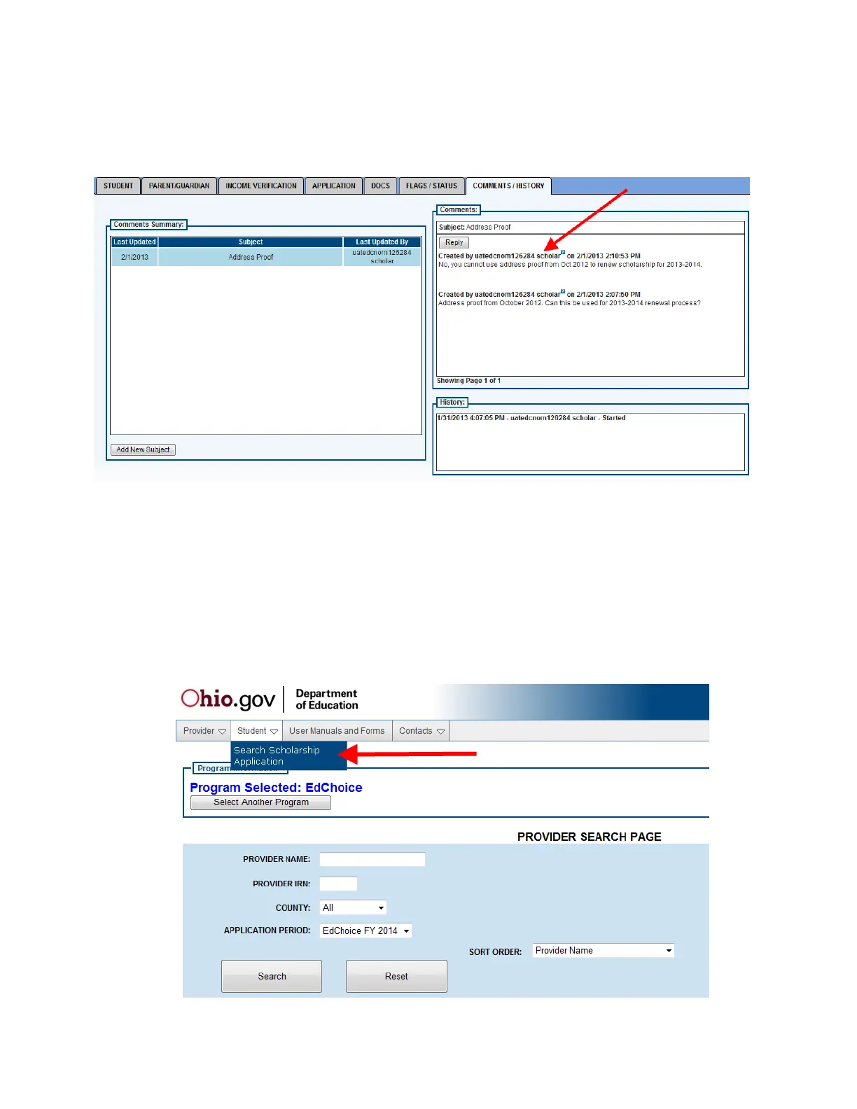 Scholarship Application button in the Student dropdown (Illustrated below with the arrow).