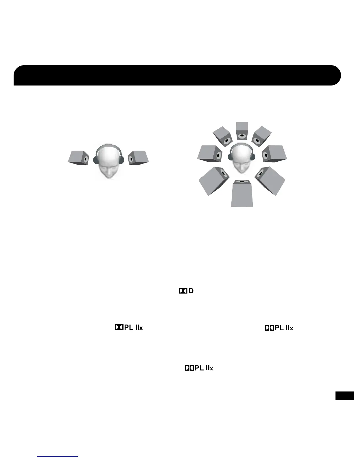 processed by Dolby Pro Logic IIx and Dolby Headphone to create an expanded stereo sound in the headset.