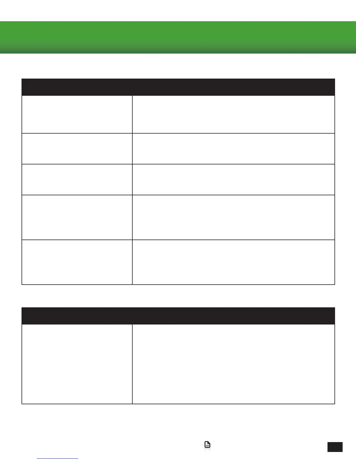 Possible cause Solution