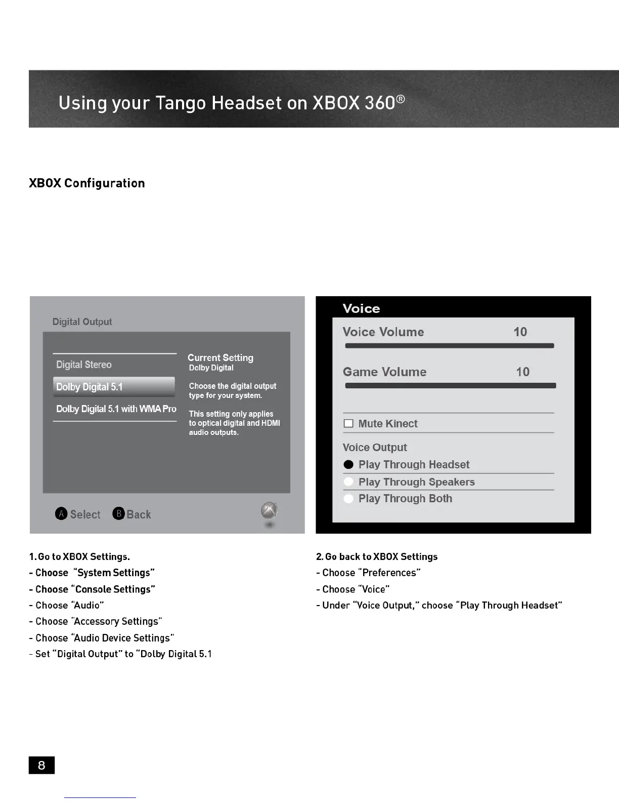 Turtle Beach Ear Force Tango - Xbox 360 Audio Configuration; Xbox System Audio Settings