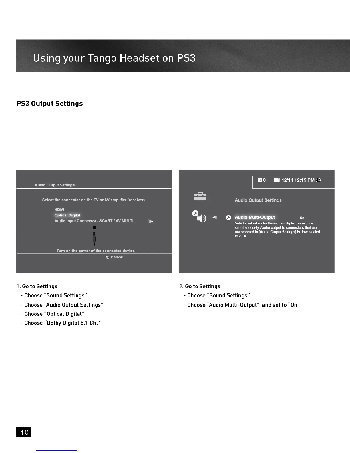 Turtle Beach Ear Force Tango - PS3 Audio Output Settings; PS3 Audio Output Configuration