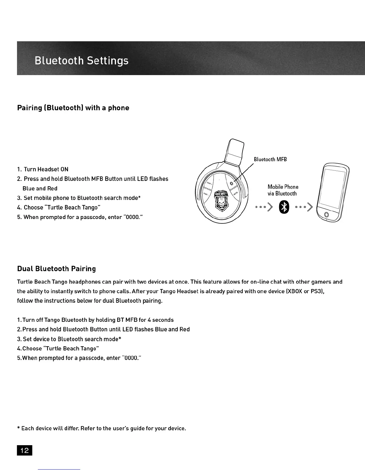 Turtle Beach Ear Force Tango - Bluetooth Phone Connectivity; Pairing with a Mobile Phone; Dual Bluetooth Pairing