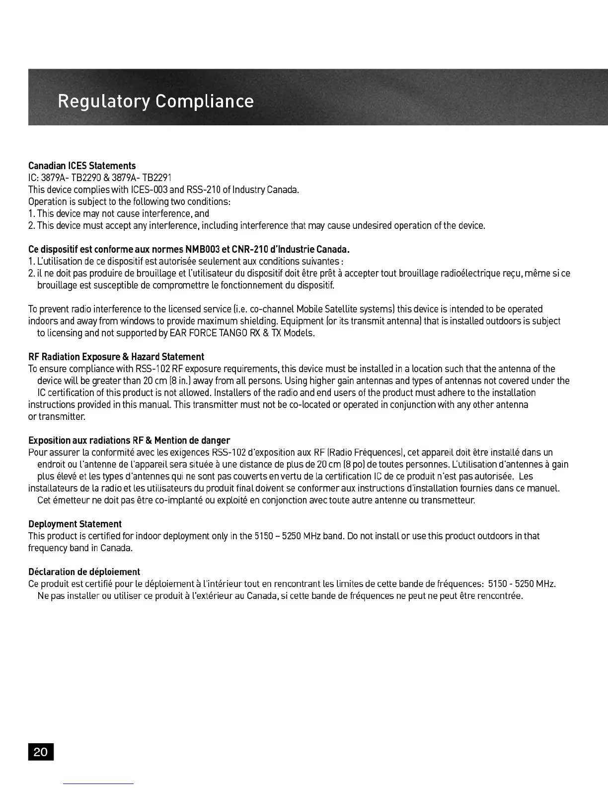 Turtle Beach Ear Force Tango - Canadian Compliance Information; ICES and RSS Statements