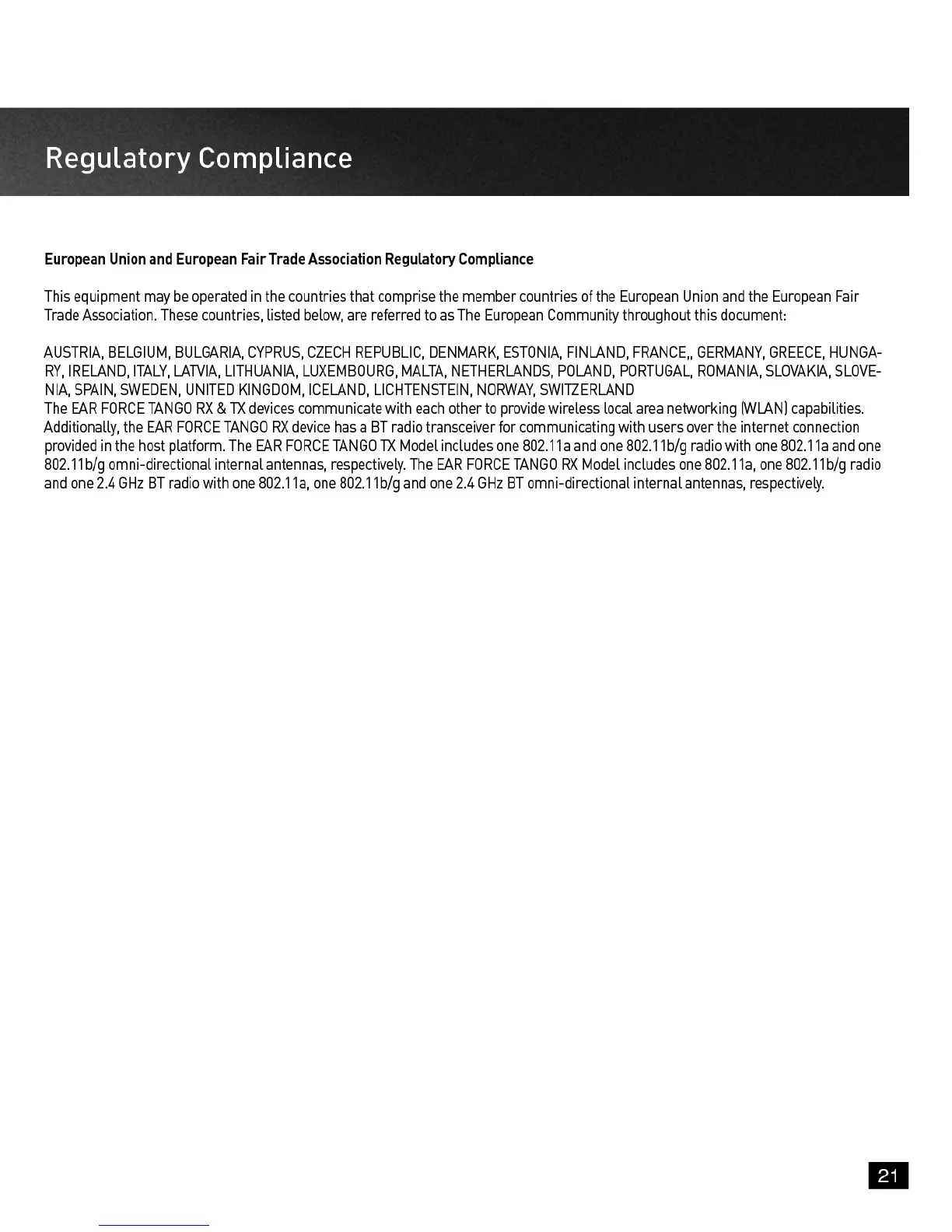 Turtle Beach Ear Force Tango - European Union Regulatory Compliance; EU and EFTA Country Compliance