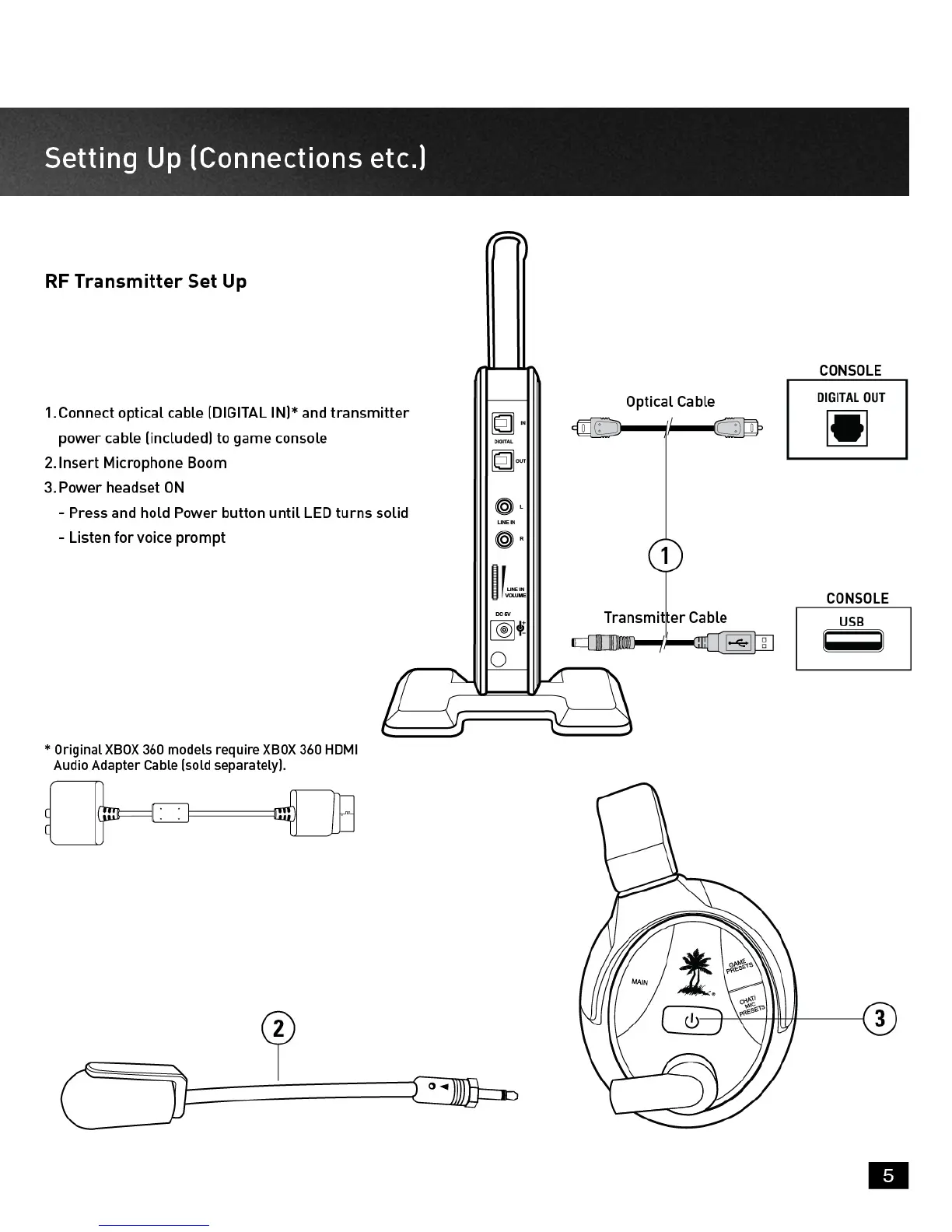 Turtle Beach Ear Force Tango - RF Transmitter Setup; Transmitter Connection Guide