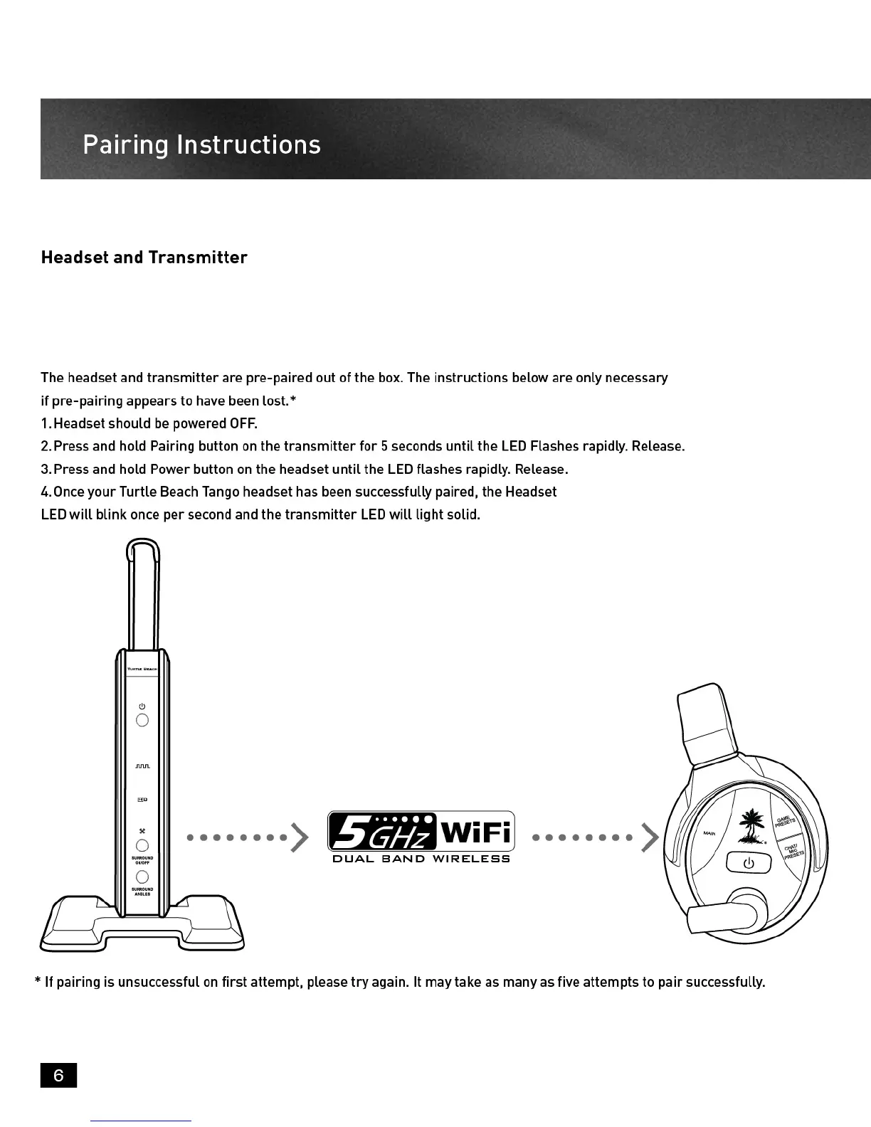 Turtle Beach Ear Force Tango - Pairing Instructions; Headset and Transmitter Re-Pairing