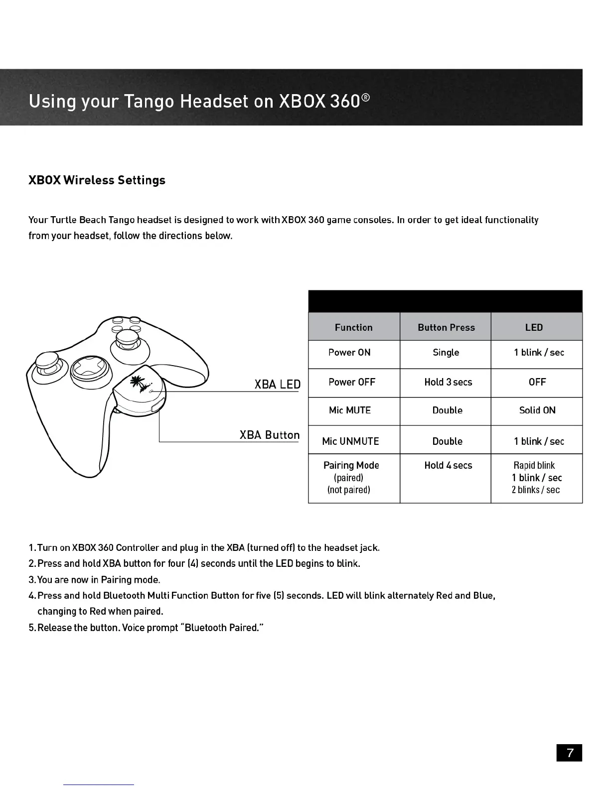 Turtle Beach Ear Force Tango - Xbox 360 Wireless Setup; Xbox 360 Wireless Settings