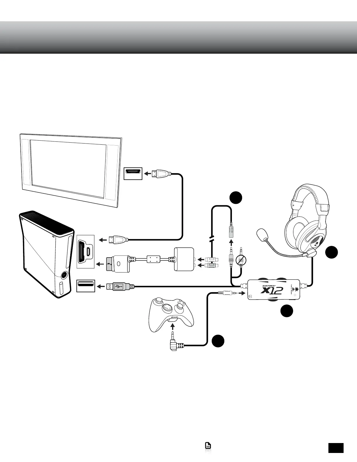 The Ear Force X12 Arctic Edition can be set up a variety of ways to match different Xbox 360 Console Versions and A/V