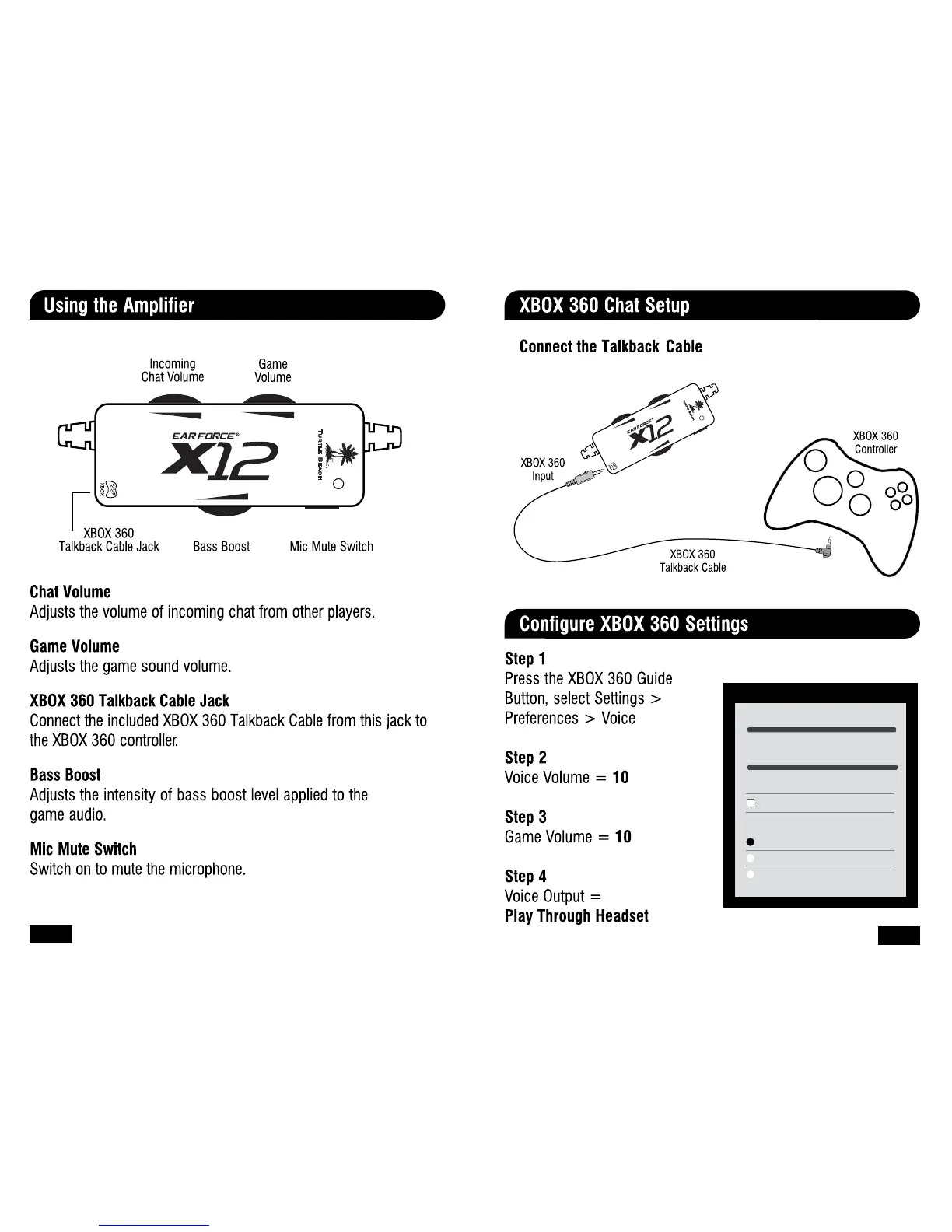 Turtle Beach Ear Force X12 - Using Amplifter; Chat Setup; Settings