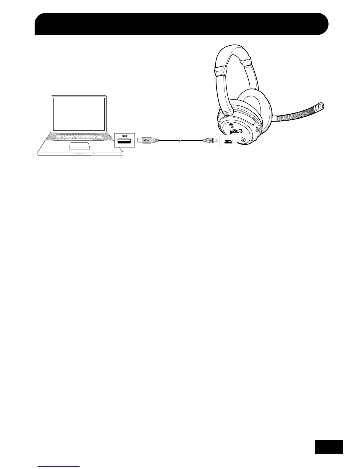 The PX3 functions as a wired USB stereo headset by connecting a USB Standard-A to USB Mini-B cable* (sold