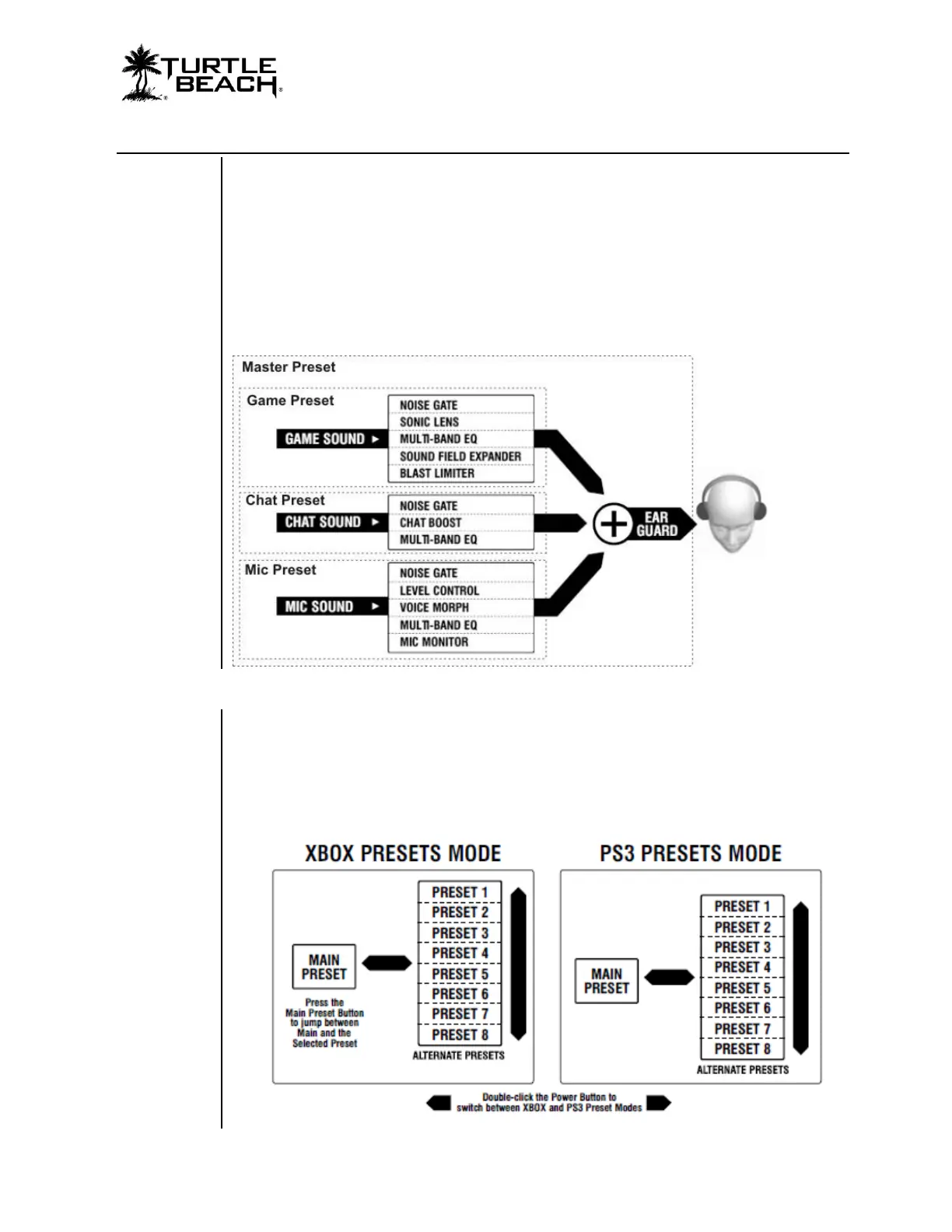 preset button on the headset toggles through the 8 Alternate Presets. The main preset