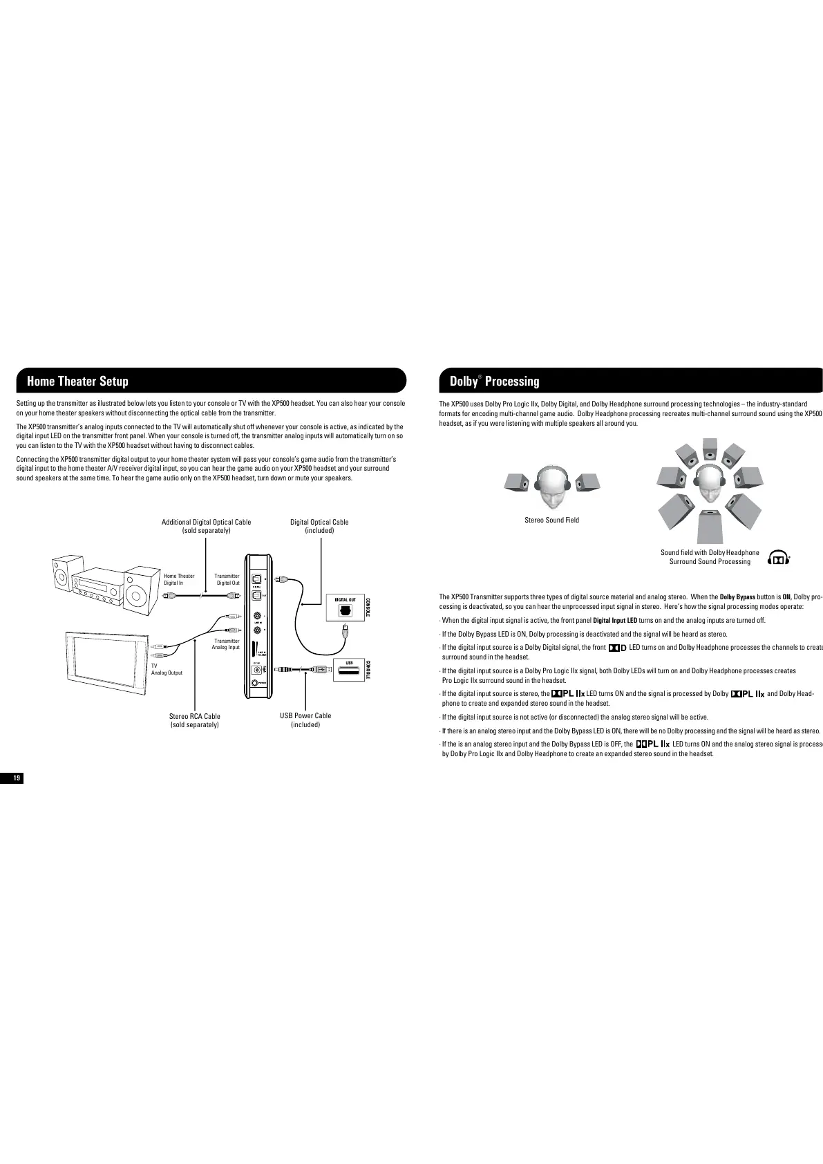 formats for encoding multi-channel game audio. Dolby Headphone processing recreates multi-channel surround sound using the XP500