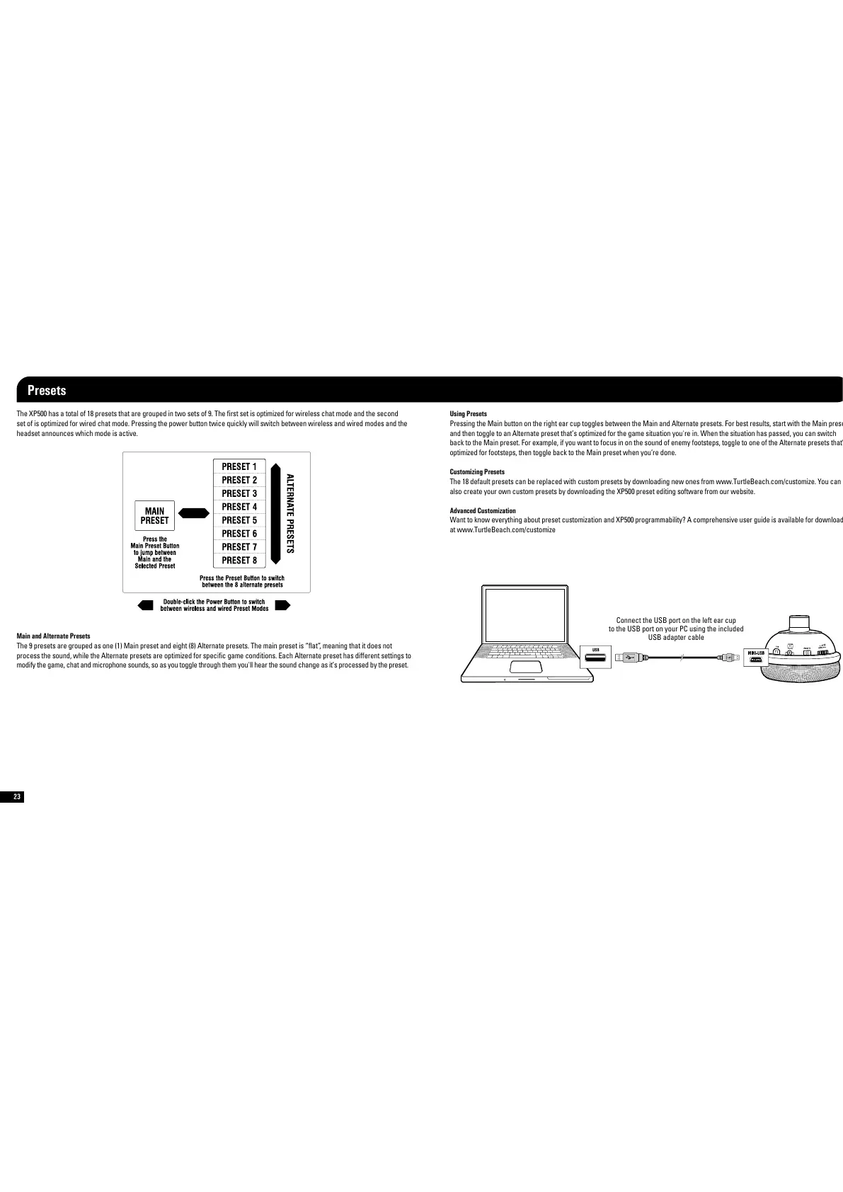 The 18 default presets can be replaced with custom presets by downloading new ones from www.TurtleBeach.com/customize. You can