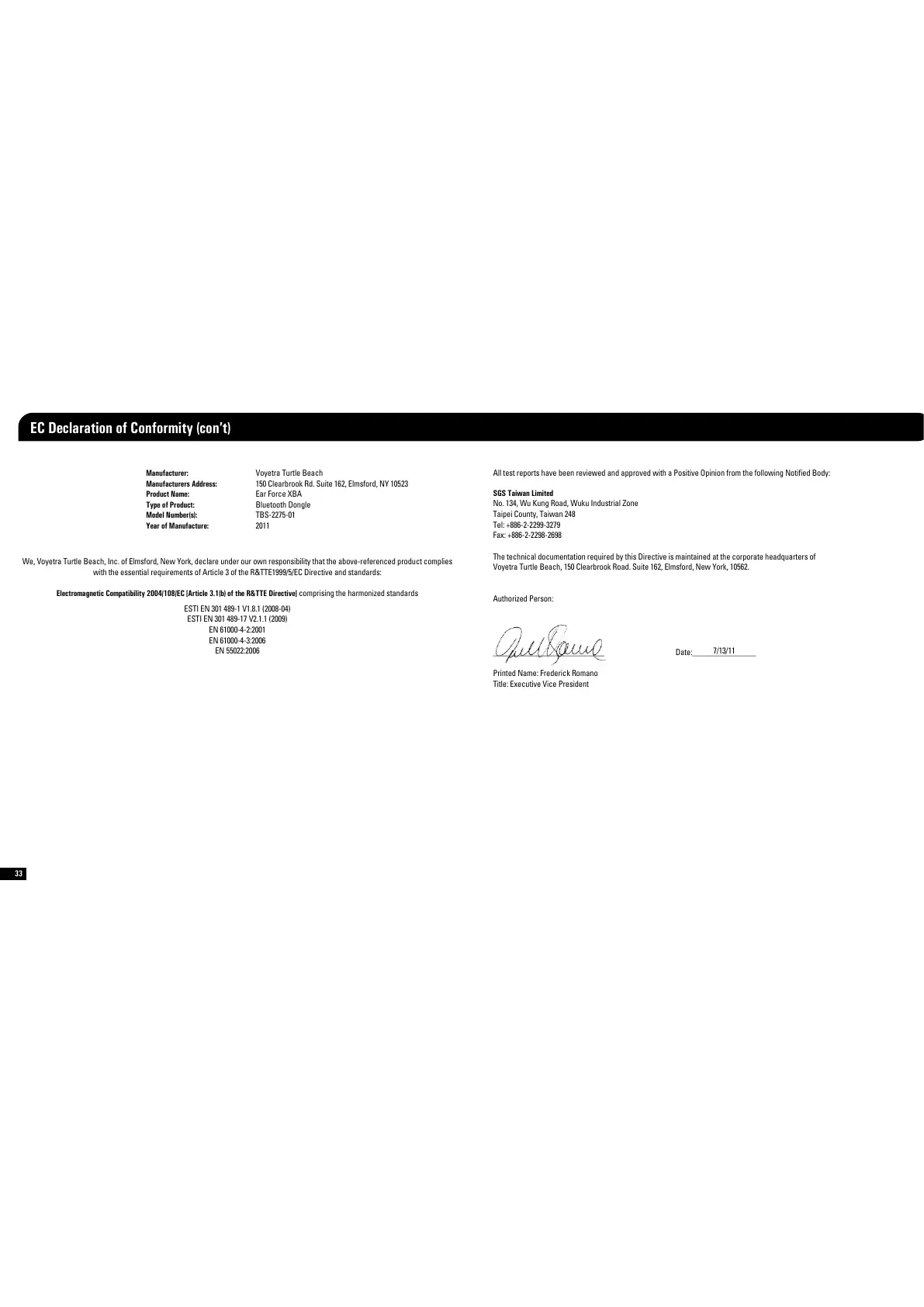 We, Voyetra Turtle Beach, Inc. of Elmsford, New York, declare under our own responsibility that the above-referenced product complies