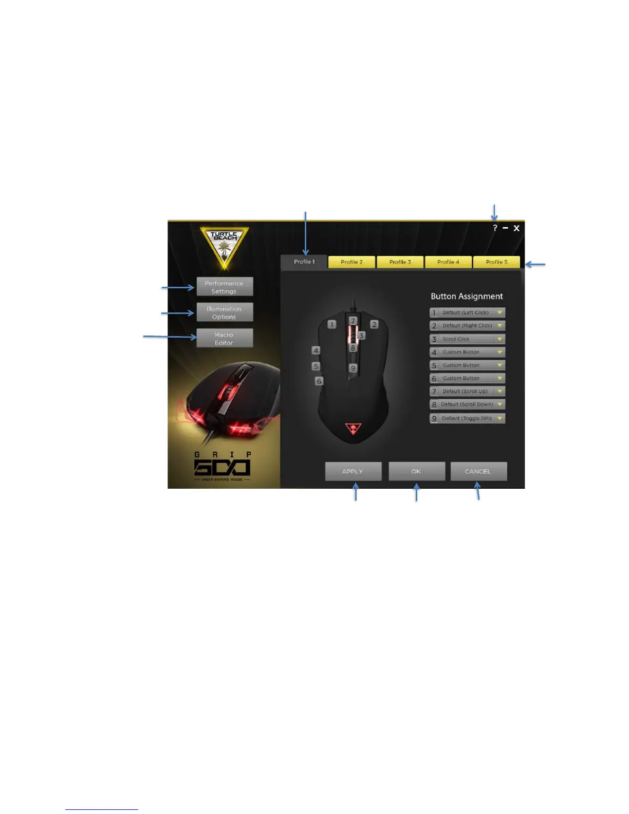 Grip 500 can be programmed with up to 5 Profile. A Profile holds all the configuration settings of you mouse