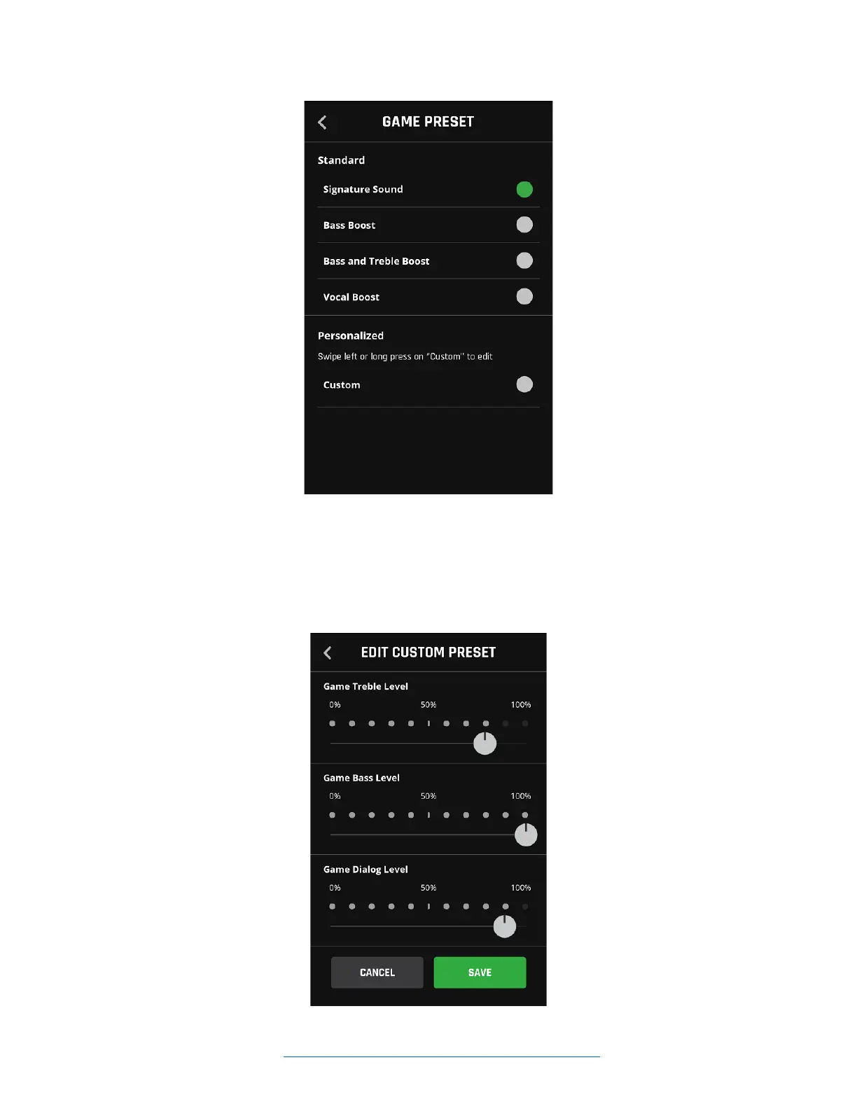Level. Adjust these sliders to customize the audio to your preference, and then tap "Save".