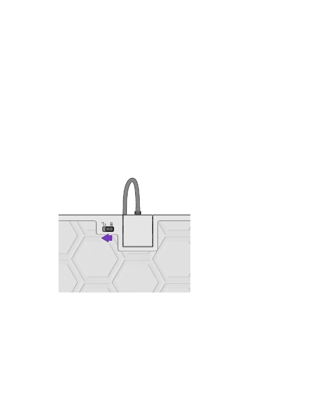 M. Öne das Kabelschloss, indem du den Schalter auf der Rückseite des Pro KO nach links in