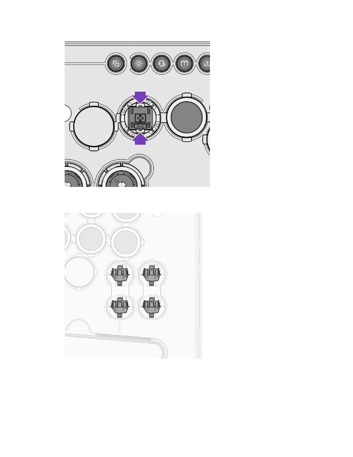 ZZ. 보관 공간에서 알루미늄 버튼 플러그를 꺼내 방금 제거한 스위치 대신