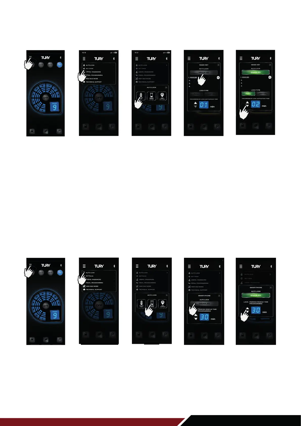 4º Click on the DISABLED switch to activate the AUTO LOCK function.