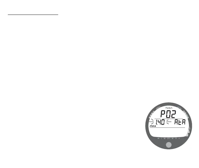 Factory set for 1.60 (ATA), the PO2 Alarm can be set to values