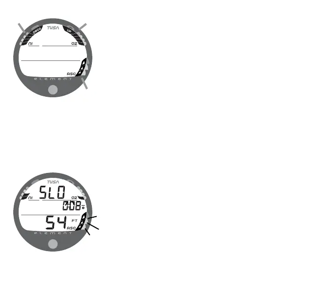 The Ascent Rate Indicator (ASC) shows how fast you are ascend-