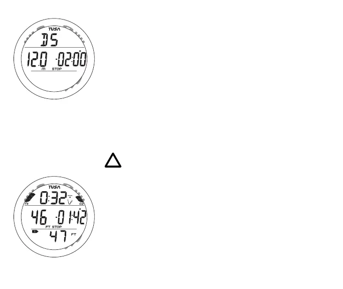 calculated Stop Depth with FT (or M) and STOP icons and the