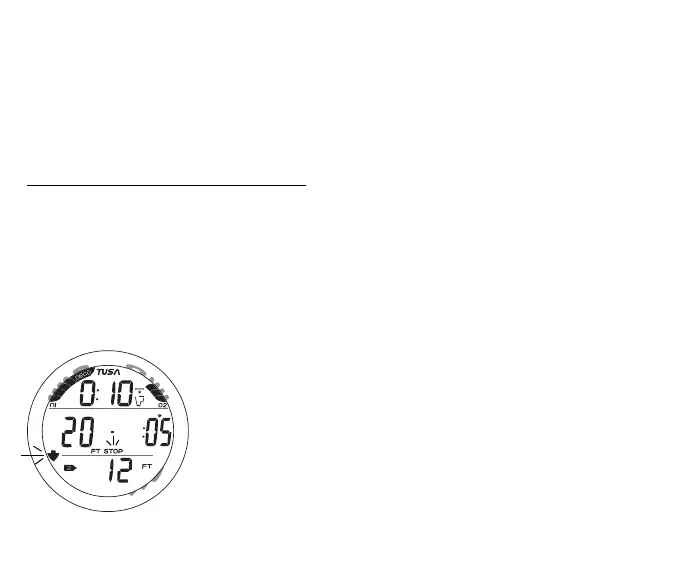 > Stop Depth with FT (or M) icon and STOP icon (flashing)
