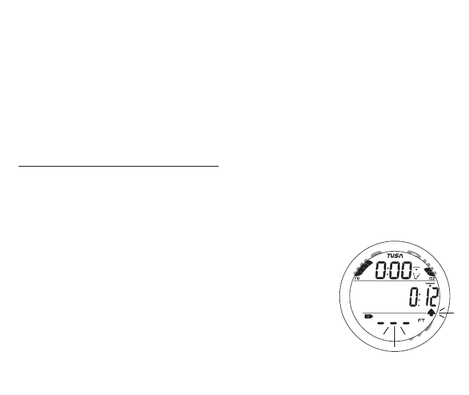 Upon ascending above 330 FT (99.9 M), the Current Depth display will be restored,