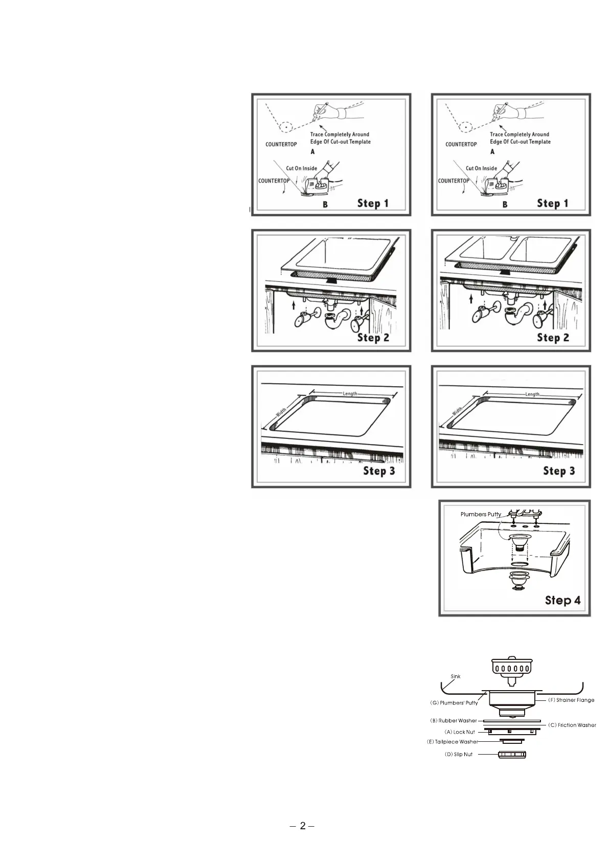 seal properly) and place in sink opening. From underneath, place (B) rubber