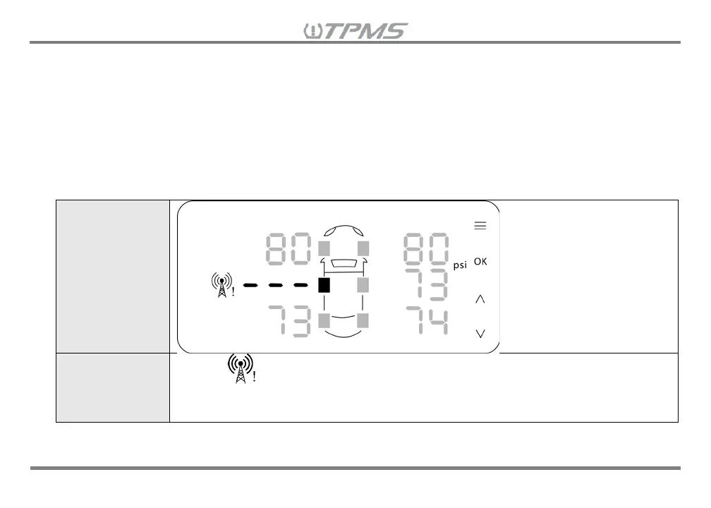• TPMS System Alarm: indicates that the sensor signal was lost since the receiver has not