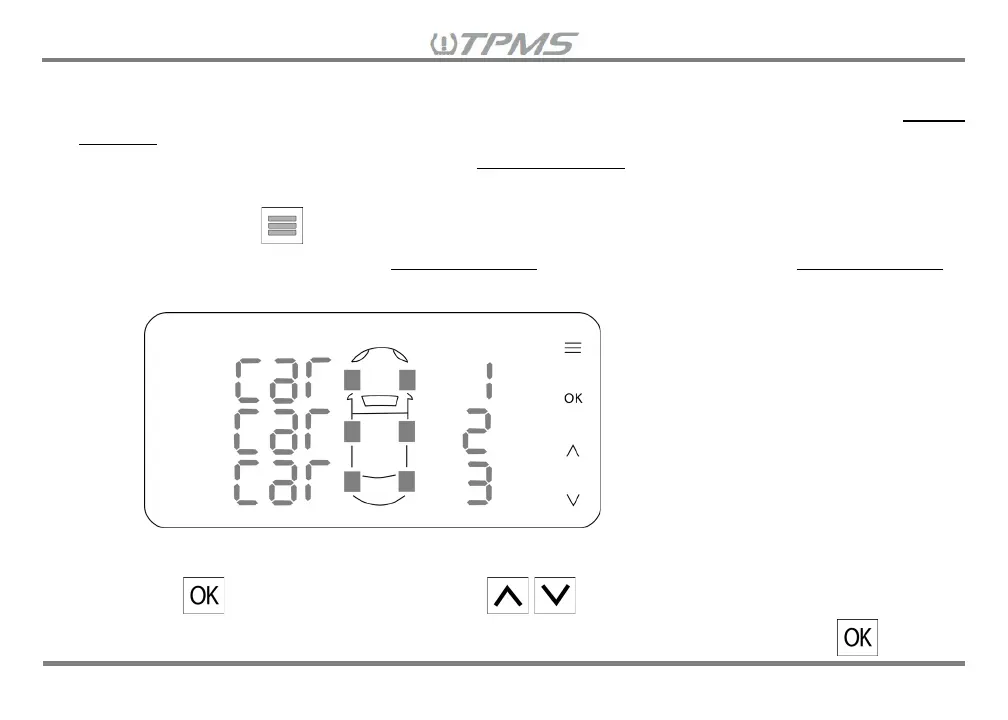 8.1.2 Press , then “CAR 1” will blink. Press to select the vehicle and/or trailer