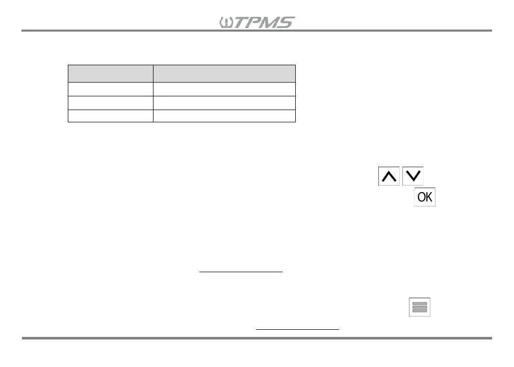 automatically go to the next TPMS parameter setting: “9.4 Setting Tire Temperature Units” for that