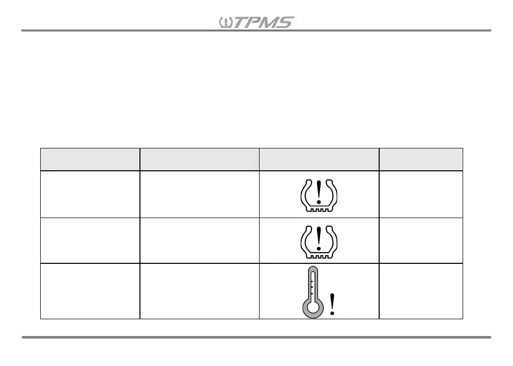 • Warning of excessive tire temperature indicates that the tire temperature has risen over the standard