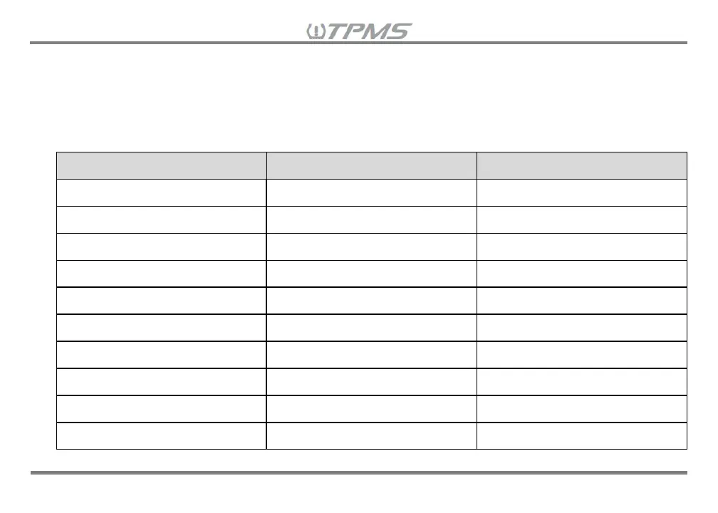 12.3 Sensor ID#s List for Each Vehicle Memory Selection