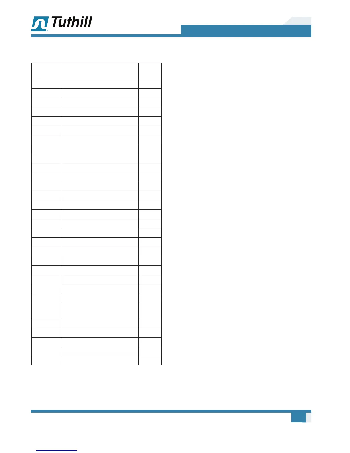 Parts List for Model 7000 Series – Internal Lube Lip/Lab Seals (continued)