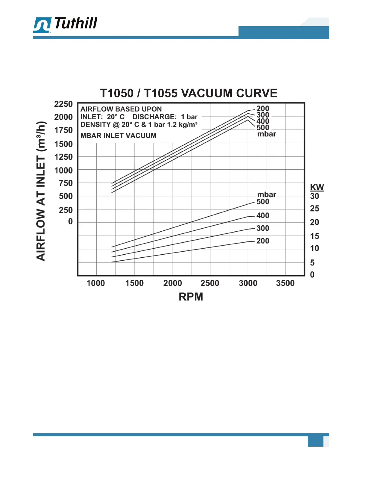 Figure 4-13 – T1050 / T1055 Vacuum Curve (Metric)