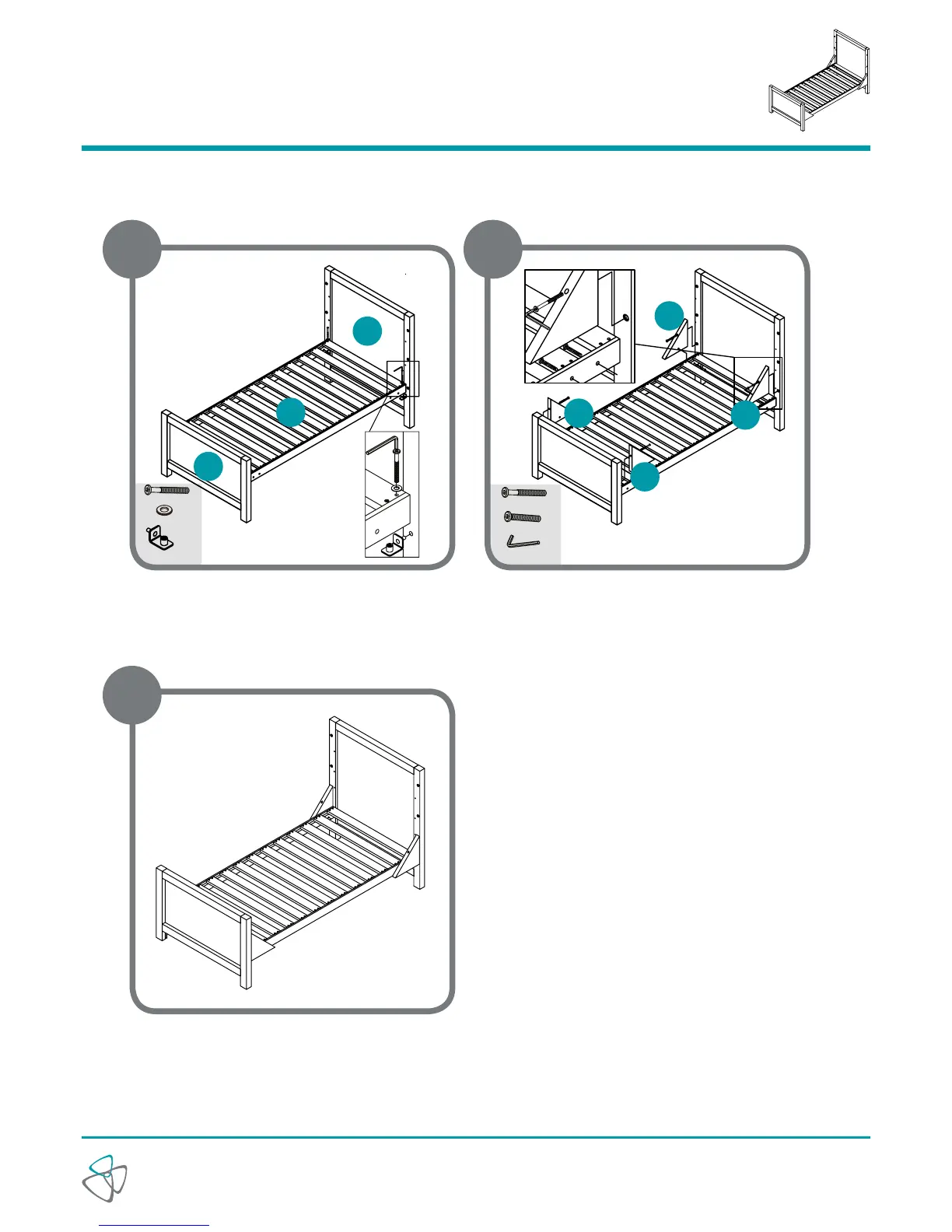 Tutti Bambini Modena - Assembling into Bed; Step 1: Assemble Mattress Supports; Step 2: Assemble Triangle Braces Support