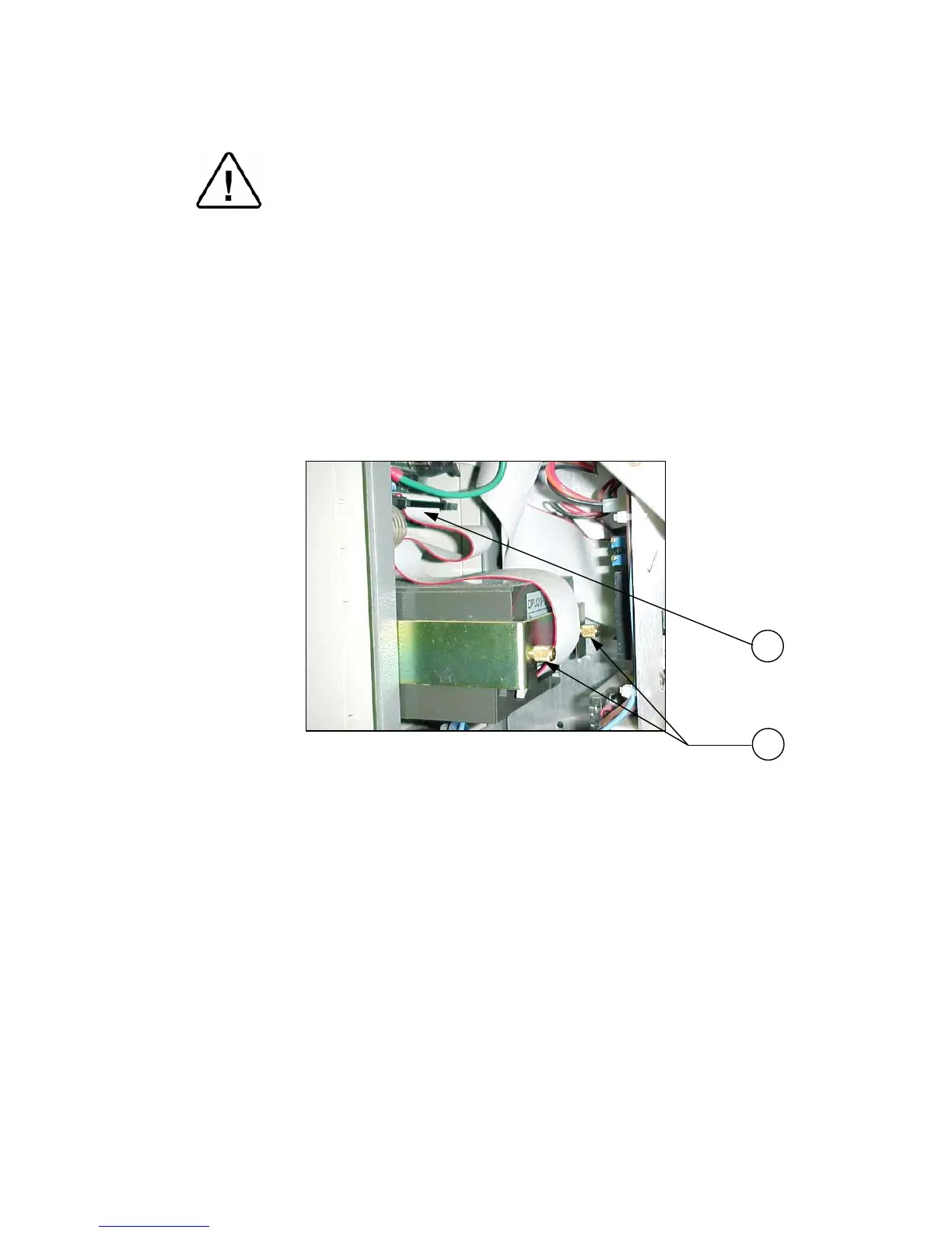 4. Unscrew the two screws (2) fastening the printer to the panel.
