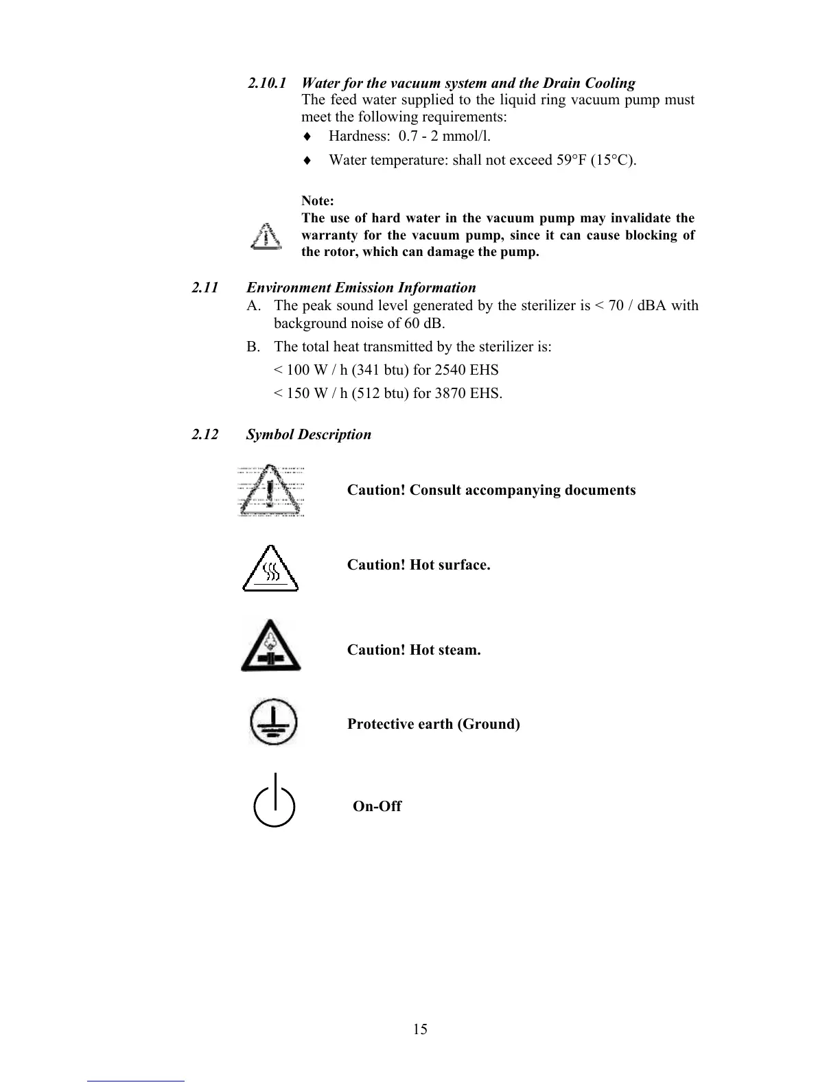 The use of hard water in the vacuum pump may invalidate the