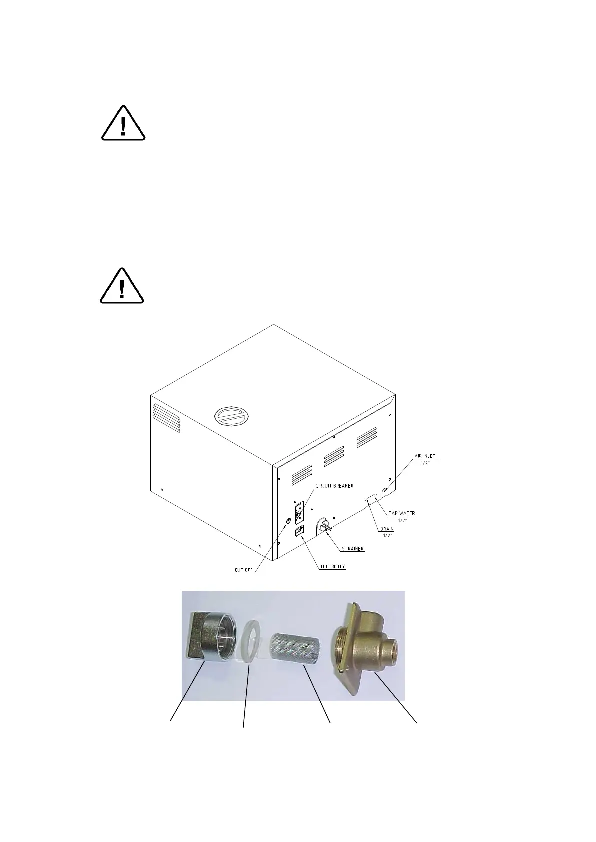 Do not touch the strainer’s cover, mounted on the exhaust line, during