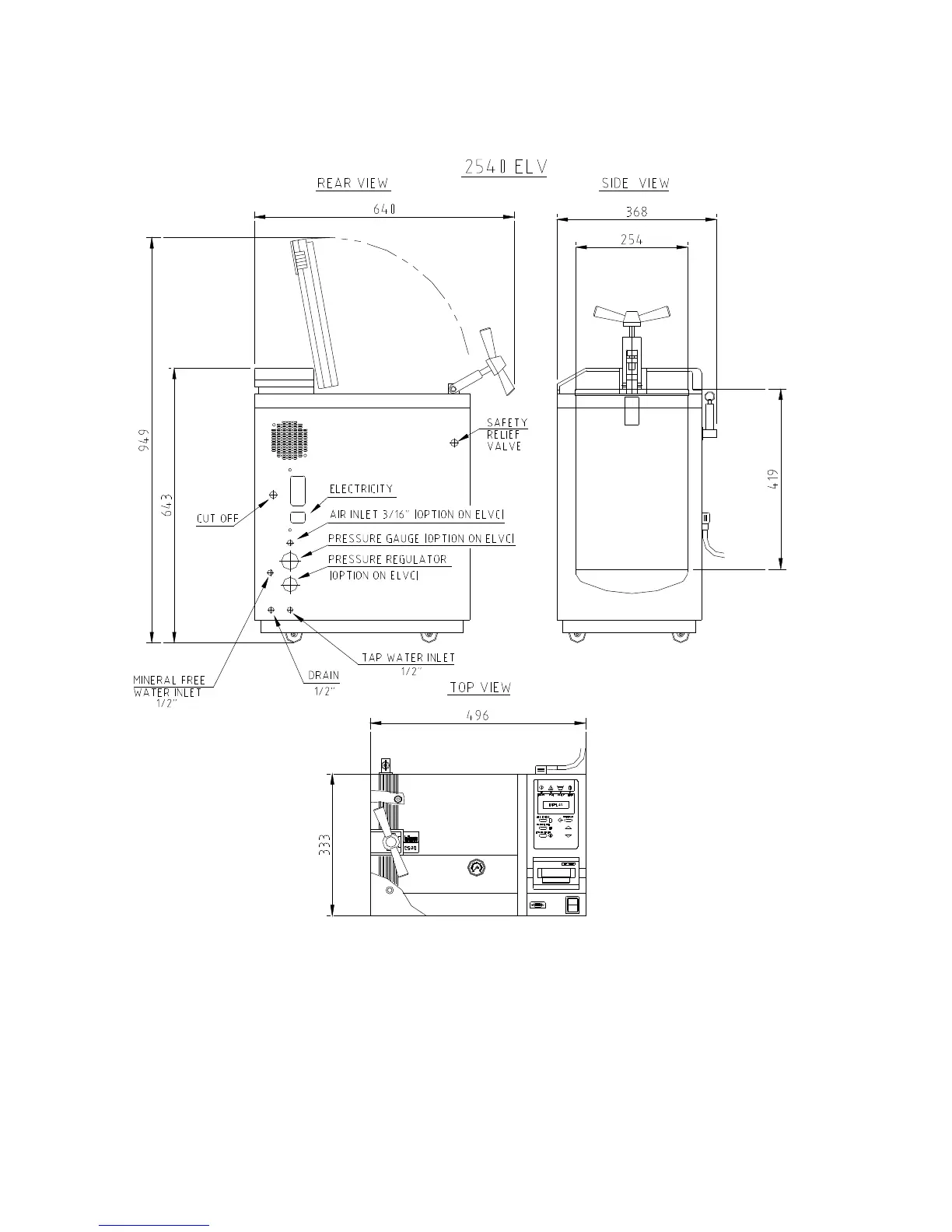 Tuttnauer 3170 - Overall Dimensions 2540 ELV